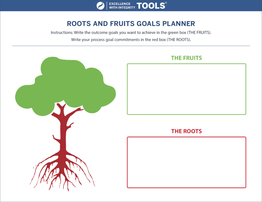 Once your team has a detailed set of performance goals, they need to reflect on the process, or Root, goals. Root goals ask the team to consider the strengths of culture and character needed for accomplishing our Fruit goals.